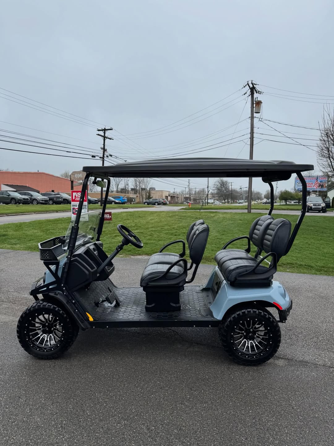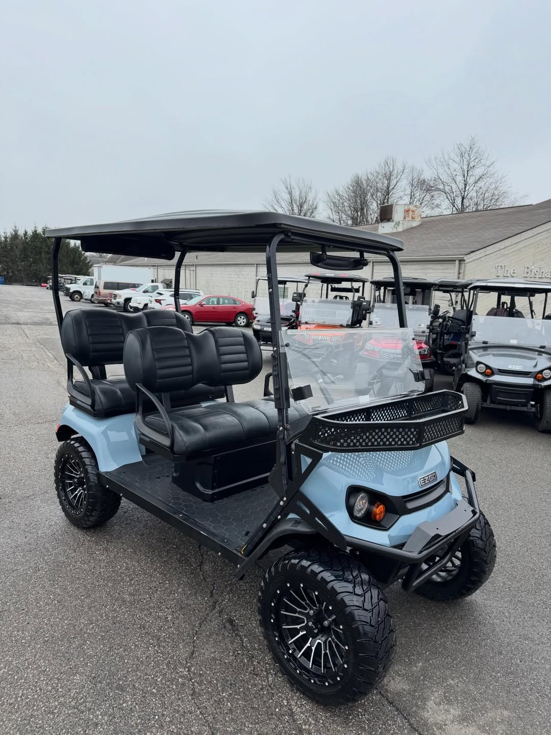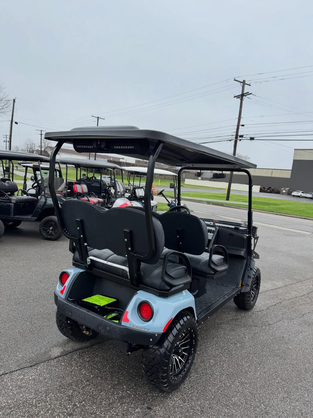 Upgrade your ride with this 4 passenger lifted electric golf cart, built for both style and performance. Featuring a lifted suspension, aggressive all-terrain tires, and premium seating, this cart is perfect for neighborhoods, campgrounds, and off-road paths.
